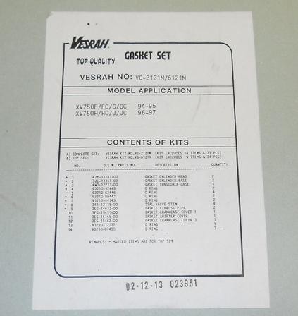 Комплект прокладок и уплотнителей для Yamaha XV 750 94-97